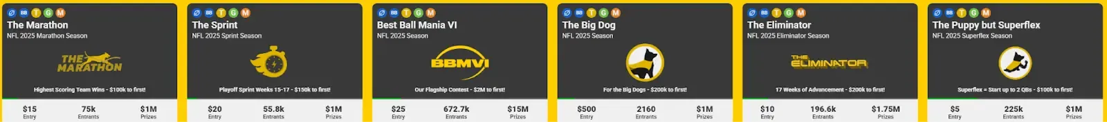 But Underdog has really stepped up its game over the past couple of years with regards to contest offerings. The lobby is currently packed full of contests that offer fun and unique twists on the traditional best ball format.