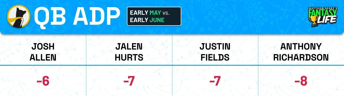 But drafters have also been quick to realize that their teams suffer at other positions–mainly WR–when they make an early detour for QB. This ADP movement feels like an implicit acknowledgment of that dynamic.