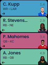 On Underdog, we have to fill a 5-player starting roster each week consisting of 1 QB, 1 RB, 2 WR/TE, and 1 FLEX.