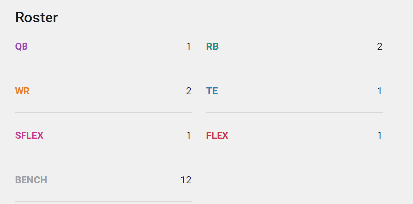 One of the main features of the Big Board: Superflex contest is its distinct roster makeup, which replaces a WR starting position with a superflex starting position that allows each team to play two starting QBs each week.