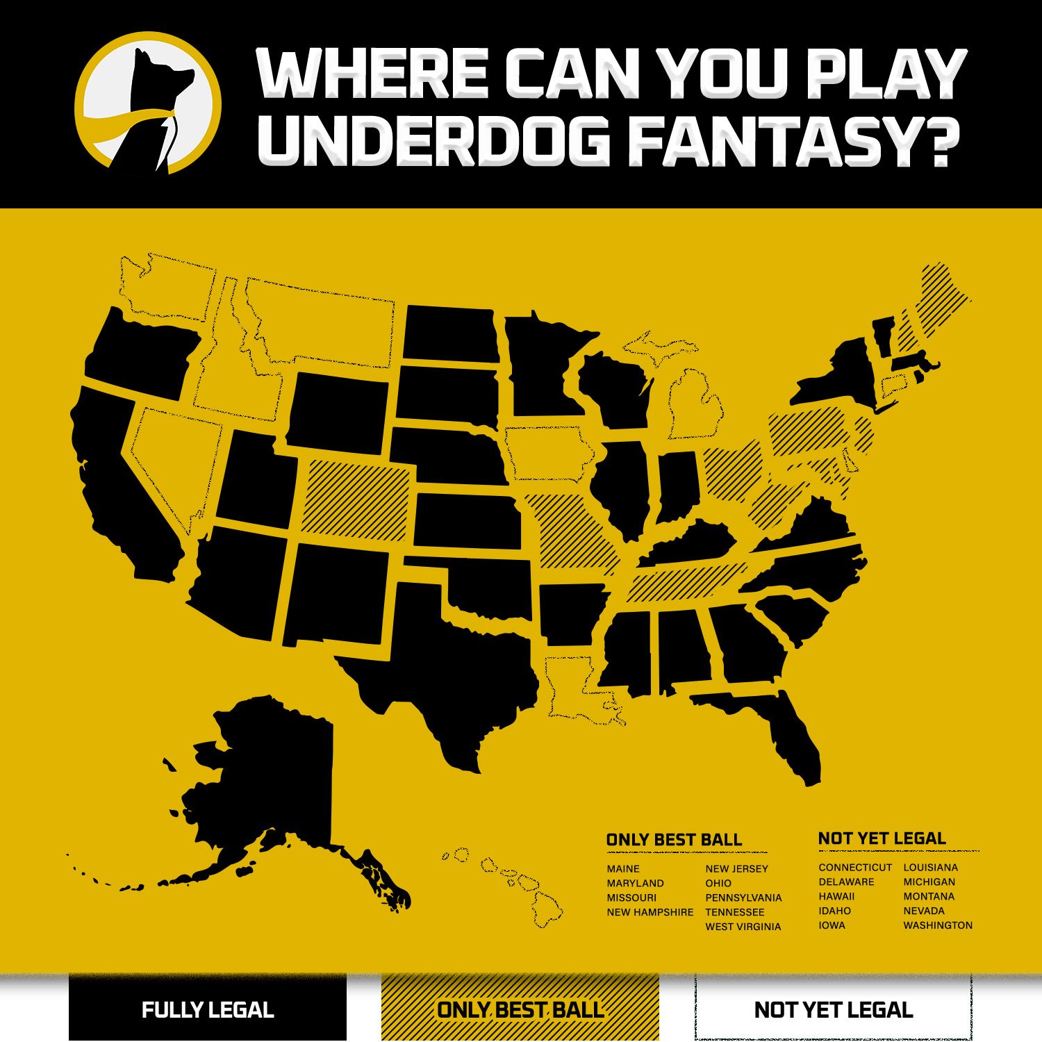 In total, Underdog best ball and fantasy drafts are available in 40 states (and Canada). Additionally, Underdog Pick’em contests are available in 32 states (and Canada).