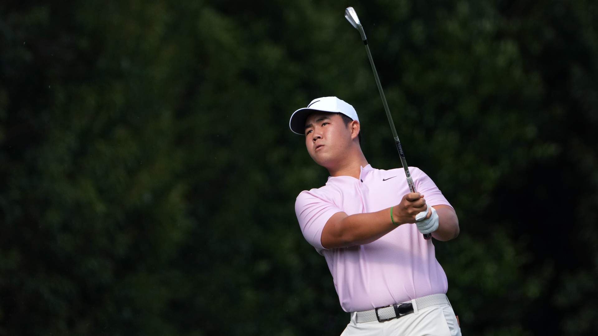 Apr 11, 2024; Augusta, Georgia, USA; Tom Kim plays his shot from the fourth tee during the first round of the Masters Tournament. Mandatory Credit: Kyle Terada-USA TODAY Sports