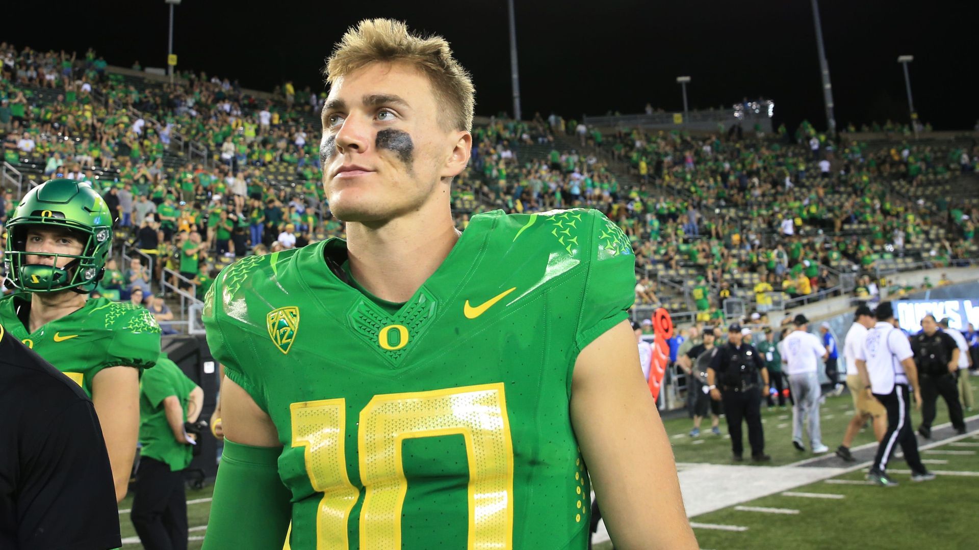 Oregon Bo Nix leaves the field after the game against Hawaii in Eugene, Ore. Sept. 16, 2023.