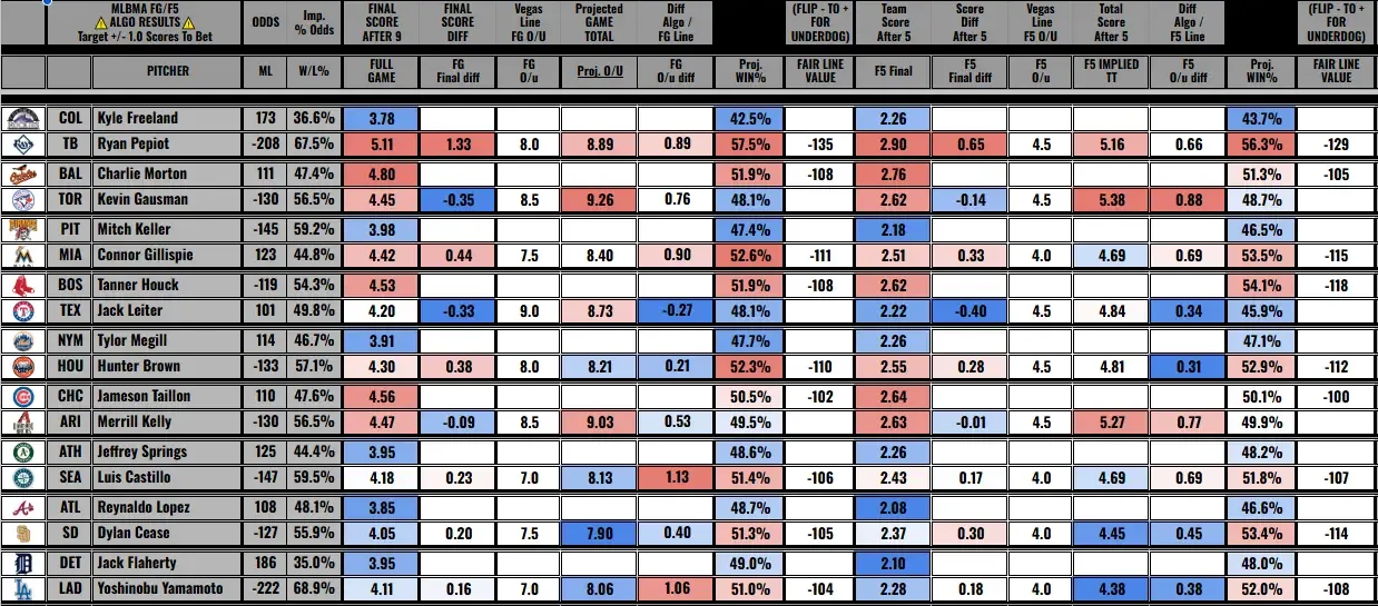 For anyone more deeply interested in daily MLB betting on a more granular level, I took the liberty of sharing my world-famous starting pitching sheets, and MLB Moving Averages Algorithm results—hit me up anytime on X @JohnLaghezza with questions or comments!