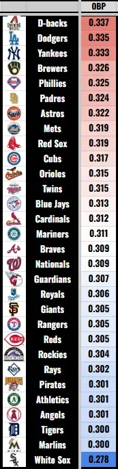 2024 Team Leaderboard: On-Base Percentage