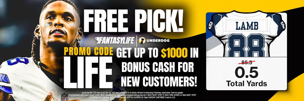 Sign up today using our promo code: LIFE and you could earn up to $1,000 Bonus Cash on your first deposit! Start the NFL season off strong, and take advantage of these incredible offers on Underdog!