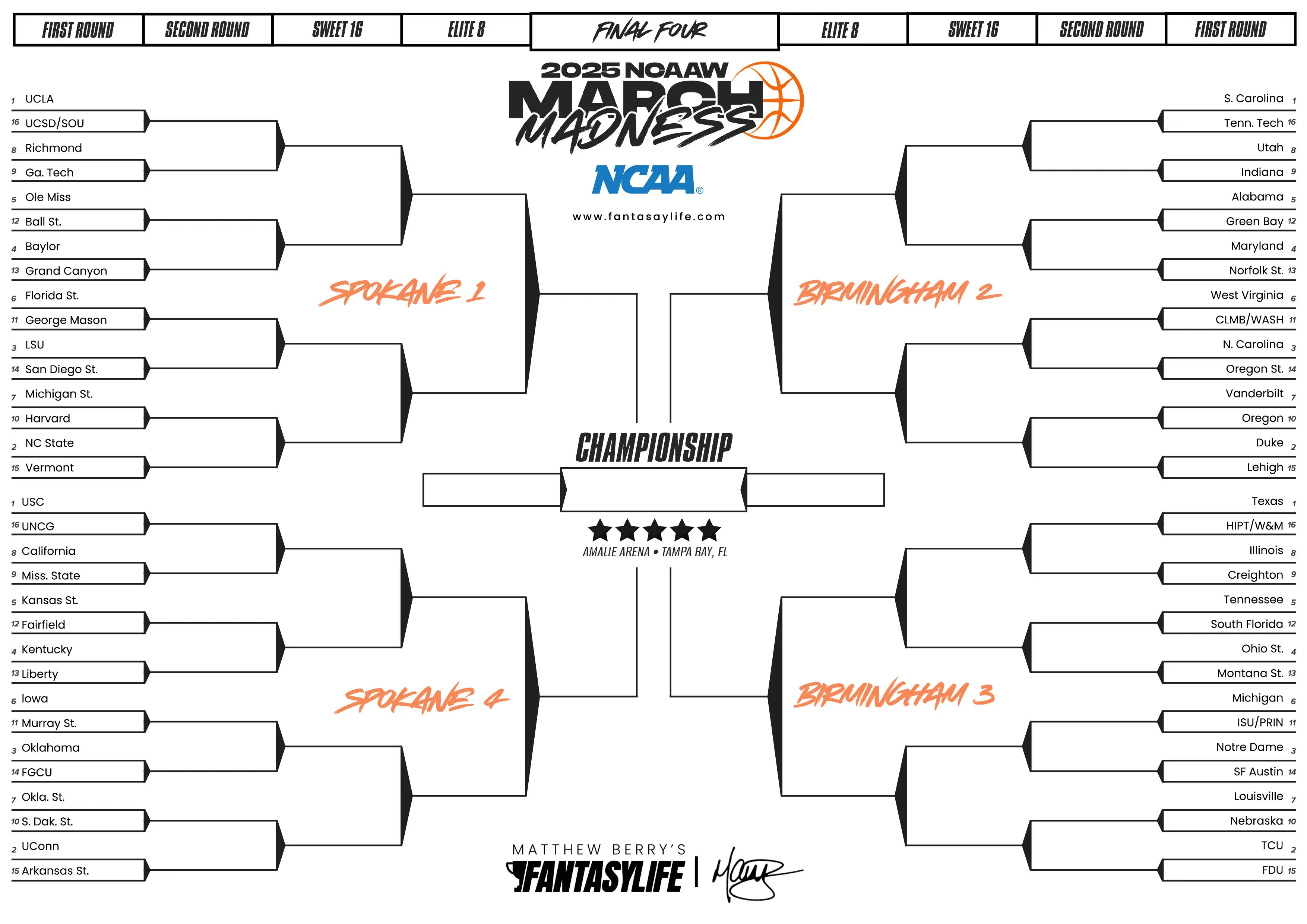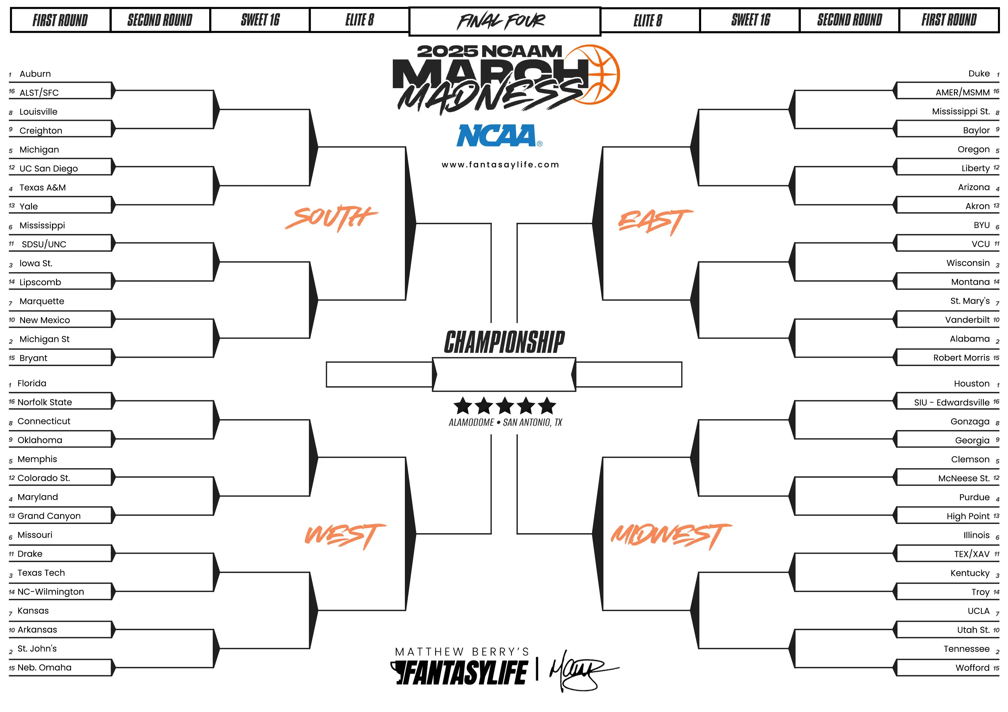 Download and print your 2025 March Madness brackets.
