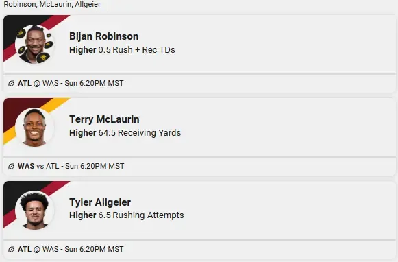 Underdog Picks For Falcons vs Commanders SNF Week 17