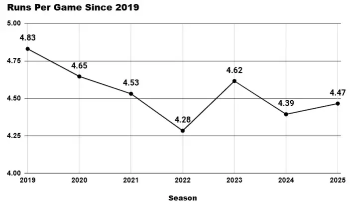 For our leadoff spot, I’ve gotten inundated with so many questions about torpedo bats, the league’s offensive trajectory, and how it may affect in-season betting—it felt necessary to bust out my handy-dandy custom charts to run another leaguewide temperature check. Not to bury the lede, but let’s just say the public is likely missing the mark.