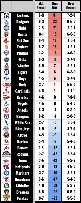 In my never-ending attempt to make this newsletter a must-read every Tuesday, I thought I could try something different. The MLB season moves so fast, it’s easy to lose the forest for the trees, so maybe a weekly trend check is in order.