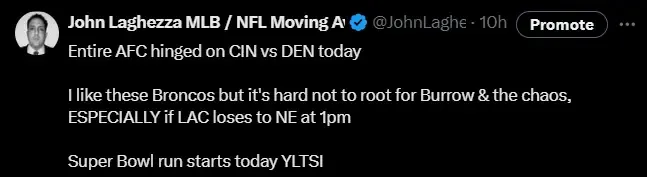 With the entire fate of the AFC dangling on a razor’s edge, we get treated to an instant classic between the Bengals and the Broncos. No way the city of Cincinnati got to sleep last night.