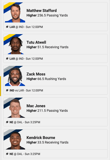 Geoff Ulrich provides his favorite Underdog Pick'em plays for Week 4 of the NFL season, including Matthew Stafford, Tutu Atwell, and Mac Jones.