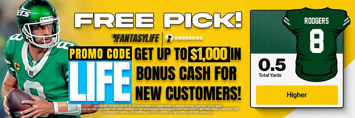 Sign up for Underdog using our promo code: LIFE and you can earn up to $1,000 Bonus Cash on your first deposit!