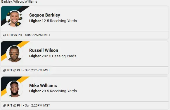 This is a combination of two of our props from above. I extended Williams’ receiving total to 29.5, which boosted our payout to over 6x and added in a Wilson higher on his passing yardage to correlate.
