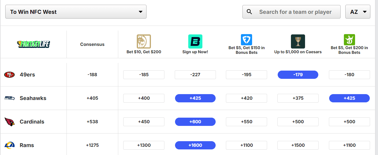 Of course, if you want to think even bigger, the Rams’ divisional futures are another area where you could look to back this team. San Francisco (whom the Rams have a win over this season) leads the NFC West at 3-3, but has a meeting with the Chiefs this week. If the 49ers lose and the Rams win LA will effectively be one game out of first.