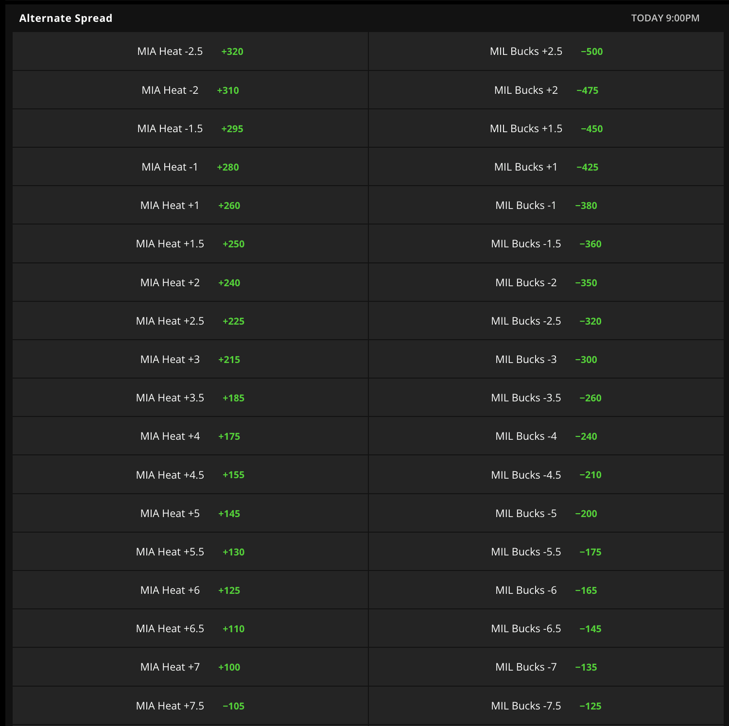 Instead of laying eight, you could choose to lay 7.5 points for -125, 5.5 points for -175, or 3.0 points for -300. These are also known as alternate lines or alternate spreads.