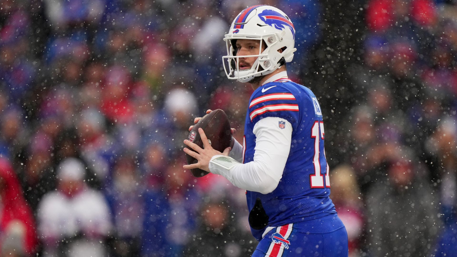 Buffalo Bills quarterback Josh Allen (17) looks to throw in the first quarter during an NFL divisional playoff football game between the Cincinnati Bengals and the Buffalo Bills, Sunday, Jan. 22, 2023, at Highmark Stadium in Orchard Park, N.Y. Cincinnati Bengals At Buffalo Bills Afc Divisional Jan 22 0192