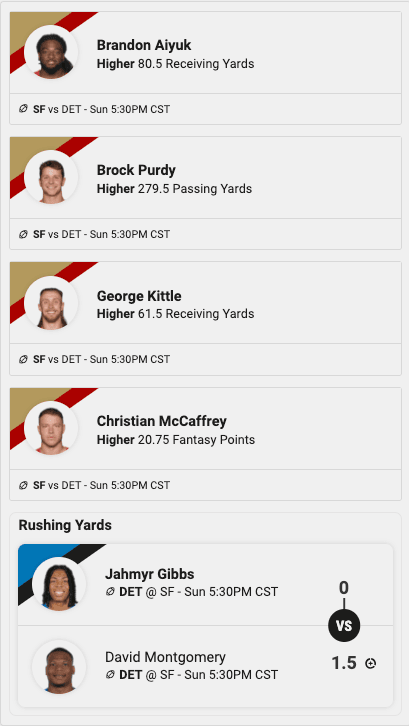 Hidden Gems. Underdog Pick'em Plays for Lions @ 49ers.