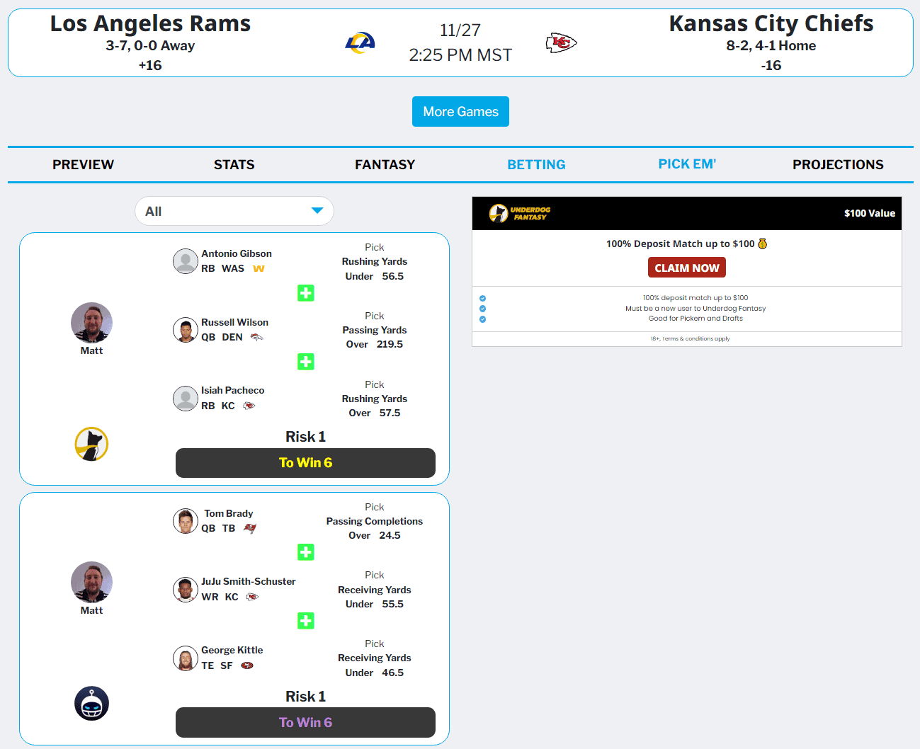Underdog Fantasy is one of the fastest-growing companies in the industry. They’re known for their massive best ball tournaments and their snake draft format, but did you know they also offer pick ‘em contests? They work very similarly to traditional prop bets, with players having specific lines set in a variety of categories. You can then pair up to five of these selections together for up to a 20x return on your investment.