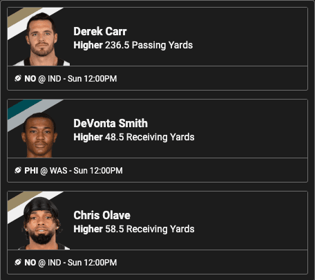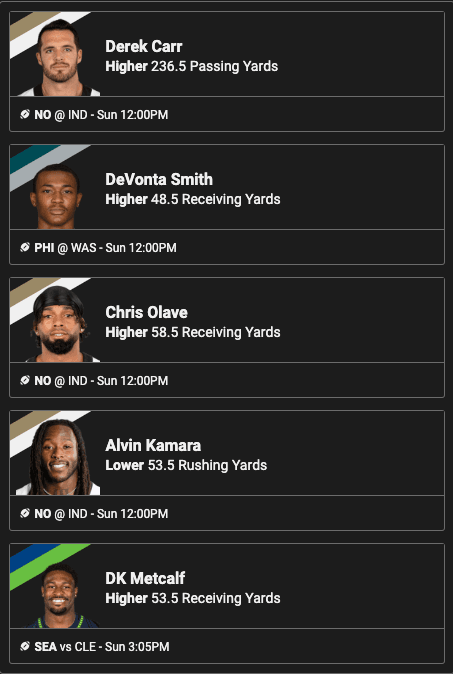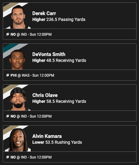 I admit, whenever I look to take Derek Carr on a HIGHER in pick’em it does make me throw up in my mouth a little. At the same time, you can’t argue with the trends in this Saints offense, or the matchup.