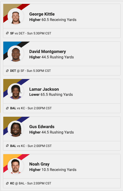 Geoff Ulrich highlights his favorite Pick'em plays on Underdog Fantasy for Conference Championship weekend, including George Kittle, David Montgomery, and more.