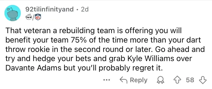 And to think, you could’ve flipped them for a couple of 2nd-round rookie picks or some “solid players” like James Robinson and Kenny Golladay! You probably wouldn’t have regretted that for the rest of your life.