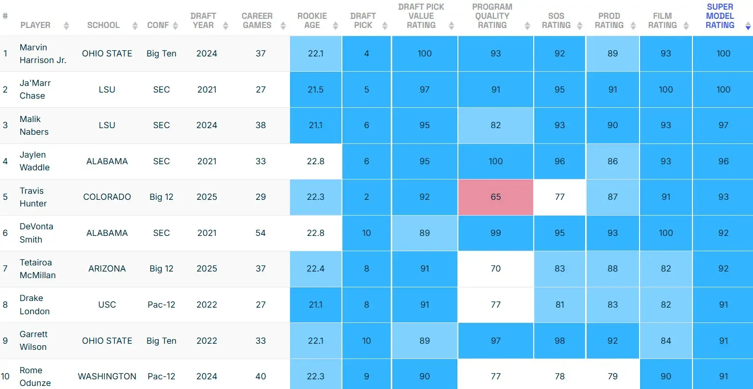 That being said, here's how the top of this class compares to the rest of the wideouts in our Rookie WR Model.
