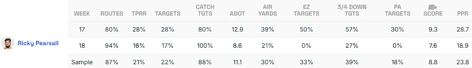 The 49ers offense was once again loaded with talent so Pearsall didn't really make his presence felt until the final two weeks of the season. However, for dynasty managers, it was a two-week stretch worth waiting for.