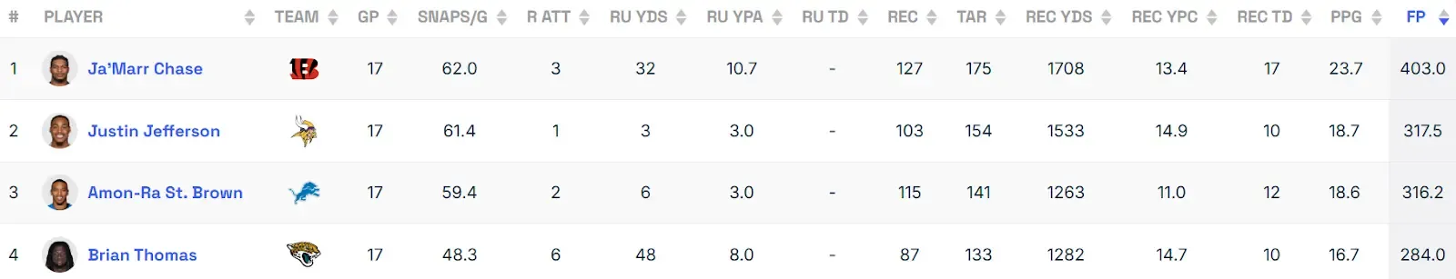 A stellar rookie season from the former first-round draft pick ended with him finishing as the WR4 in PPR formats.