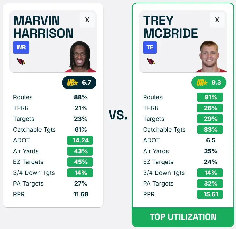 Despite the Cardinals drafting Marvin Harrison, McBride still appears locked into the No. 1 receiving option role. Even if it's a two-pronged passing attack, I prefer TEs who are in tightly funneled offenses where the target distribution is consolidated around just a handful of options.