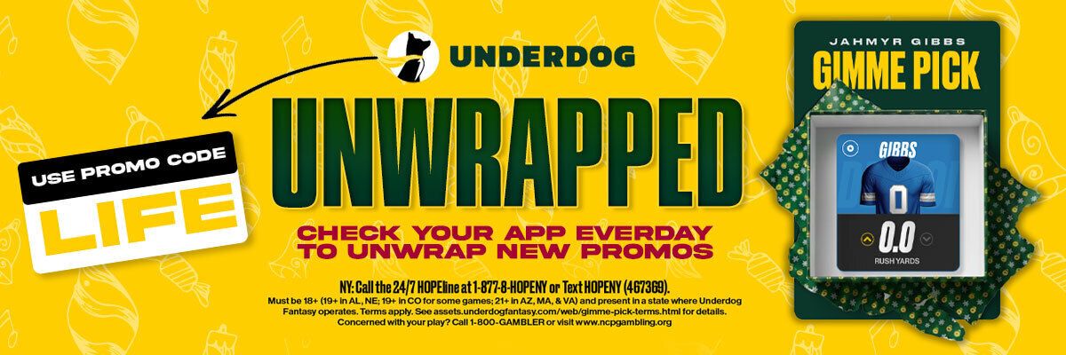 Sign up for Underdog using our promo code: LIFE, and you can earn up to $1,000 Bonus Cash on your first deposit!