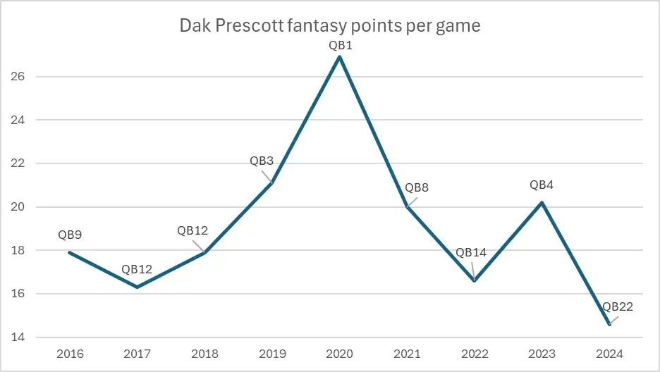 What exactly is Dak Prescott's fantasy ceiling in the year 2025?