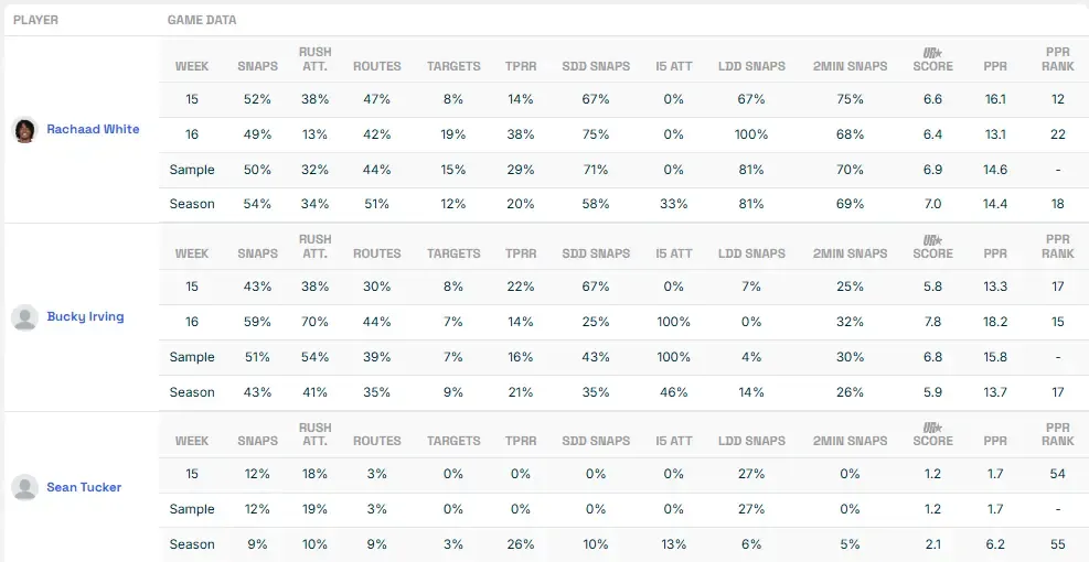 Bucky couldn't ask for a better matchup against the league's single-worst fantasy defense against RBs. The rookie torched this group for a season-high 152 yards at the beginning of December. Let's do it again with the fantasy season on the line, please.