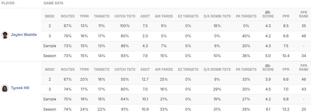 Without Tagovailoa, Hill DOWNGRADES to mid-range WR2 status, and Waddle is a WR4.