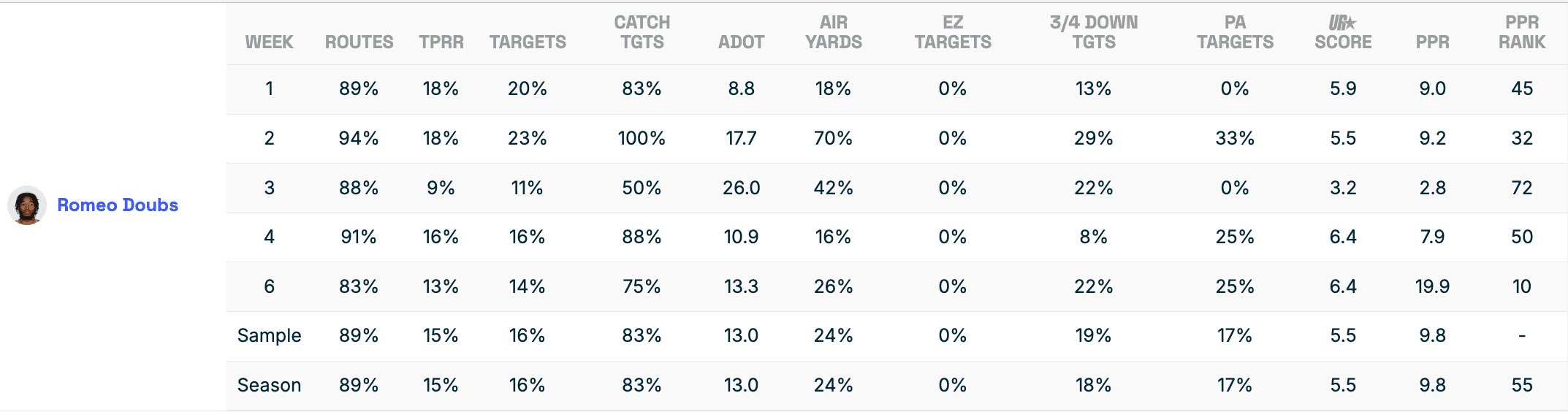 There is a chance the Packers' high-flying offense can help Doubs buck the trends above, but the odds tell us we shouldn't get over-excited about his Week 6 performance.