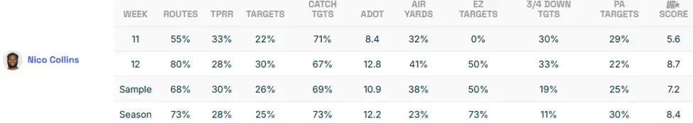 Fantasy Football Week 13 WR Matchups: Nico Collins Returns to Prominence