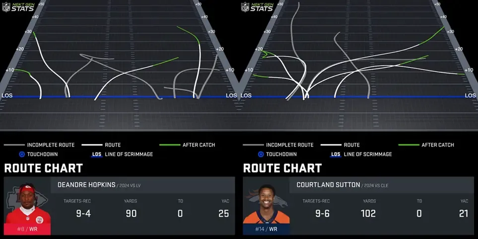 Cleveland sits as the 13th-best unit for WRs. Outside of Courtland Sutton’s big day, Marquez Valdes-Scantling tagged them for 16.7 PPR points, and Quentin Johnston put up 21.8. Tee Higgins also found the end zone in their first divisional matchup. I highlighted these guys in particular, as they have similar body types and can work the boundary in contested-catch situations like Hopkins. With Hopkins taking on a larger role in the Chiefs’ offense, he could be the key to their next last-minute win in Week 15.