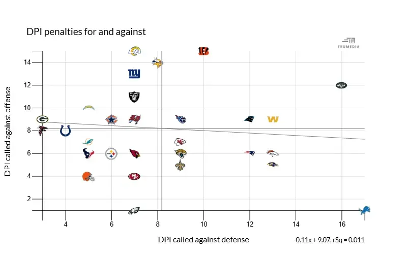 Well, they've only had *one* defensive pass interference penalty called against them this season, while nobody has had more DPI flags called on their defense (17).