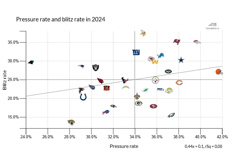 Nope. Especially when considering the Panthers' league-low pressure rate comes alongside a fairly high blitz rate.