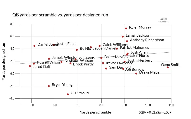Yup! Whether it's on scrambles or designed runs: Richardson should be on anyone's short list of the position's most dynamic players with the football in their hands.