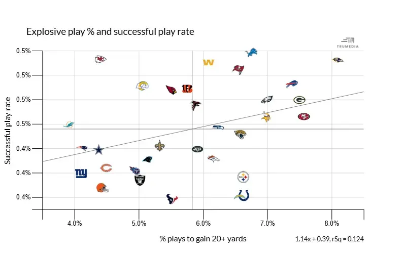 Yup. Only the Lions have a higher success rate this season … but 27 offenses have produced a higher rate of 20-plus yard plays.
