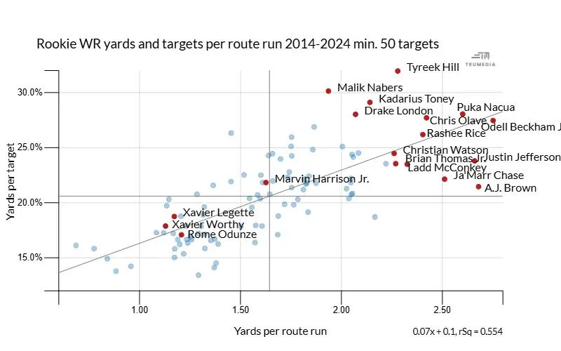 He's in pretty spectacular company when it comes to his yards and targets per route run.