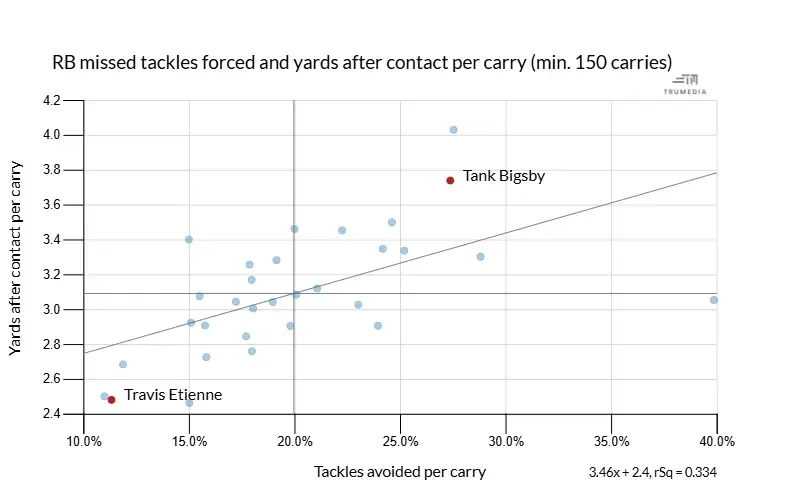 Jaguars ranks in RB rush yards before contact per carry: