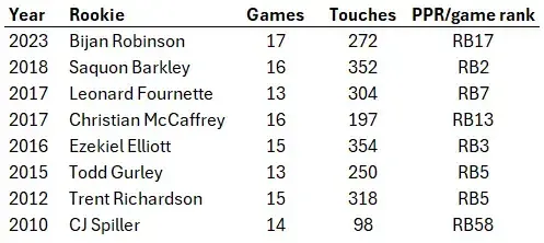 Highest ratings in the Fantasy Life Rookie RB Super Model 2018-2025:
