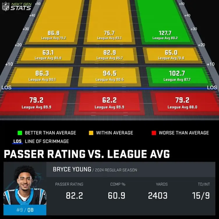 Despite Bryce Young’s improvements down the stretch, one of his limitations as a passer shows up where McMillan will most likely operate. Young’s 49.0% completion rate to the intermediate boundary ranked 21st among active starters after Week 8. His efficiency marks were also below average. Simply put, we should closely follow the development of Young’s rapport with McMillan this offseason. Without an indication the rookie will play as the Z opposite Xavier Legette or work inside ahead of Jalen Coker or Adam Thielen, we might see a slow start for McMillan in 2025.