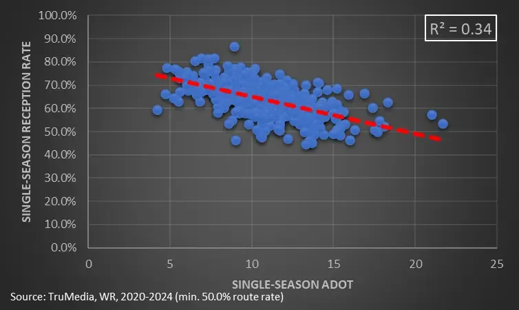 On a small scale, we can use aDOT as a proxy for a receiver’s skills as a route runner.