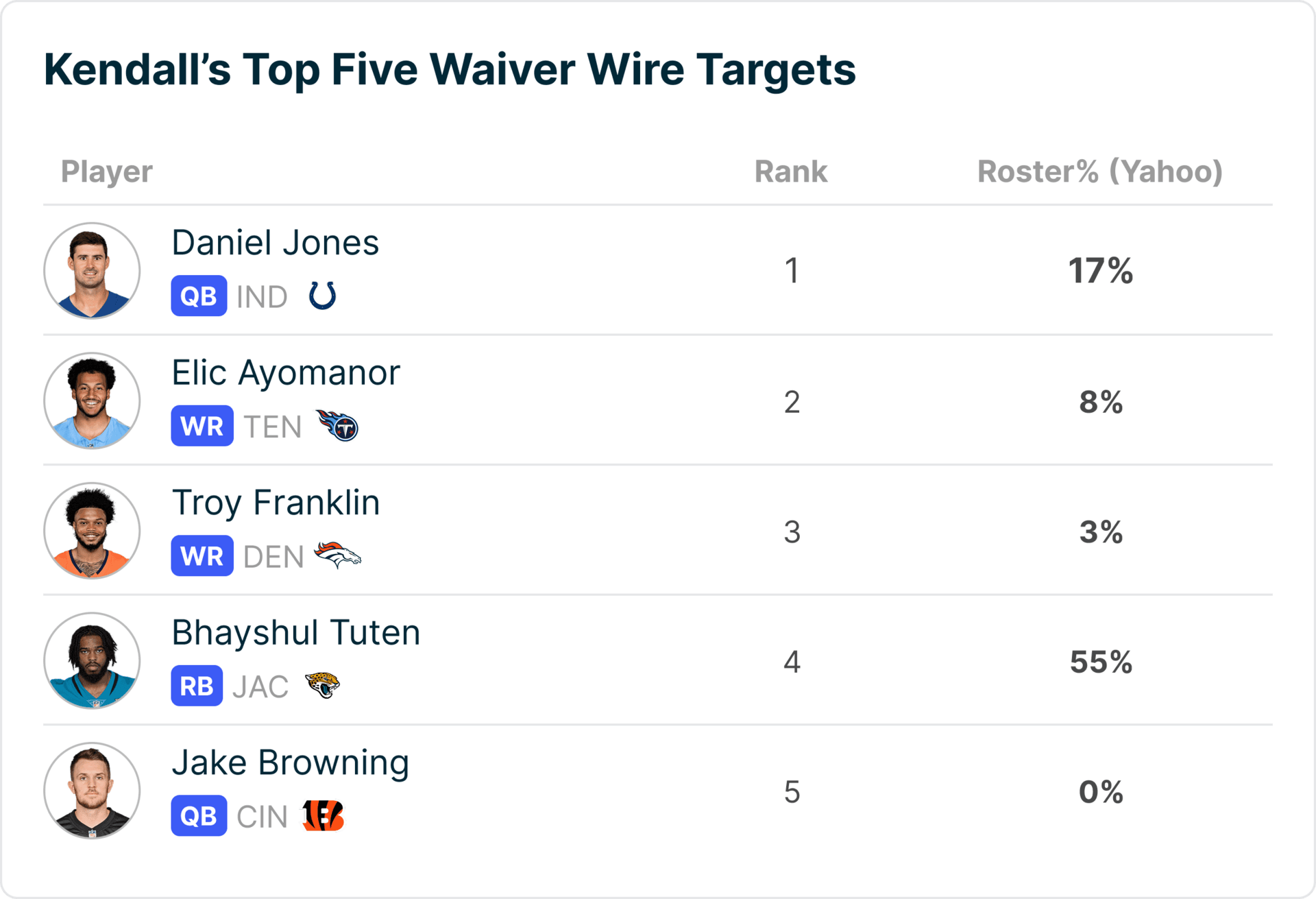 Let’s get into Week 3 with Kendall Valenzuela’s top five waiver wire targets …