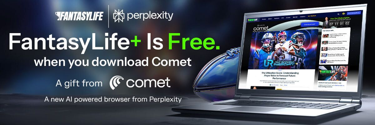 Now until Nov. 2, our friends at Comet are buying all new premium subscribers FantasyLife+. That’s full access to everything on Fantasy Life, including Dwain, Ian, Freedman’s and all of our expert rankings, tools like Rankings HQ, Fantasy HQ, Utilization HQ, Best Ball HQ and projections … 100% free, thanks to Comet.
