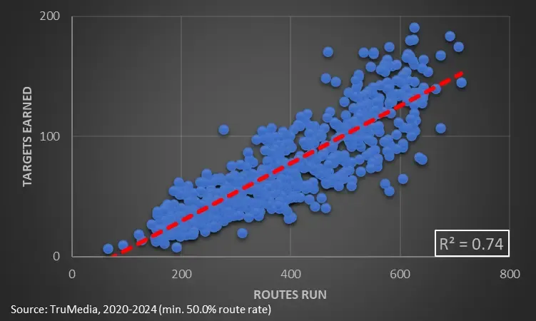 Like my tales of FOMO from college, routes tell us who was part of the story during a game. However, it doesn’t necessarily mean our receiver was the main character. I’ll explain.