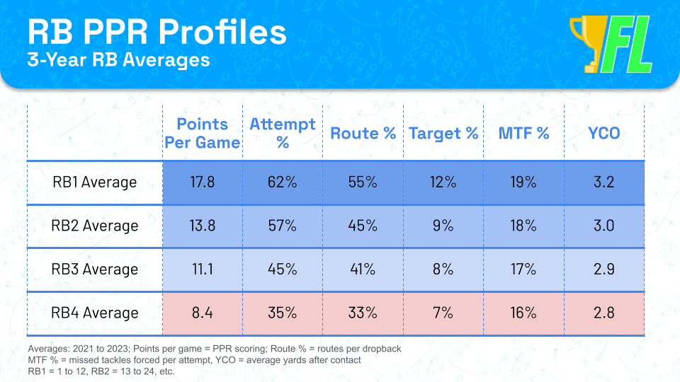 When we put it all together, this is what RB1s, RB2s, etc., have looked like on average over the past three seasons.